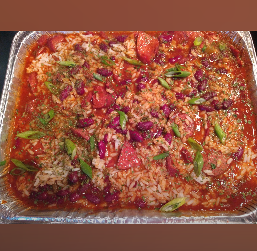 *Cajun Red beans & rice w/(turkey) andouille or smoked sausage, an additional $3.00 per person