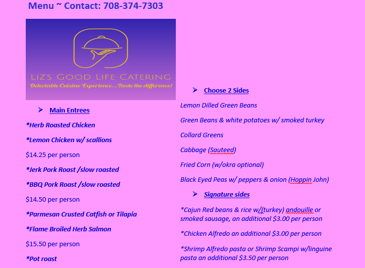 Signature sides can also be selected as a main course $14.00 per person.